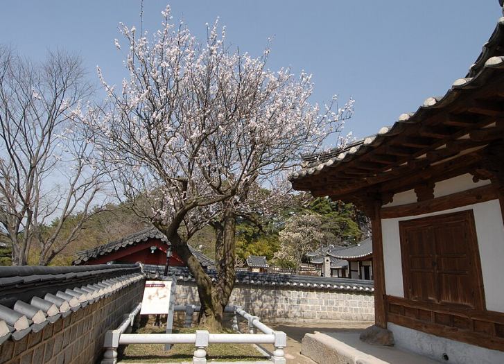 특징: 율곡 이이의 생가 오죽헌에 자리한 고고한 백매. 고택과 어우러진 품격 있는 분위기.