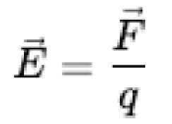 즉, 전하 \(q\)에 작용하는 힘 \(F\)를 전하량으로 나눈 값이 전기장의 세기입니다.