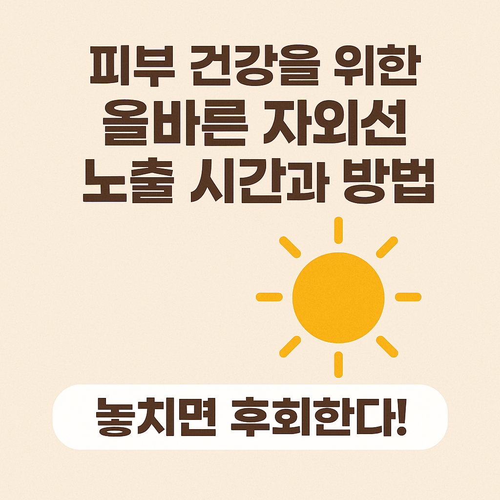 피부 건강을 지키면서도 비타민 D 합성 등 햇빛의 긍정적 효과를 누리는 올바른 자외선 노출 시간과 방법을 쉽고 자세하게 소개합니다. 자외선 차단과 적정 노출 균형을 맞춰 피부 노화 예방과 건강 증진에 꼭 필요한 정보를 지금 바로 확인하세요.