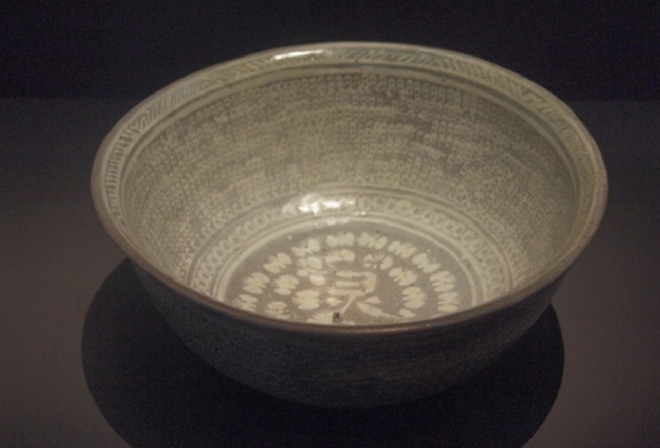 ‘영산인수부’가 새겨진 대접(粉靑沙器印花文靈山仁受府銘大楪, 조선 15세기)