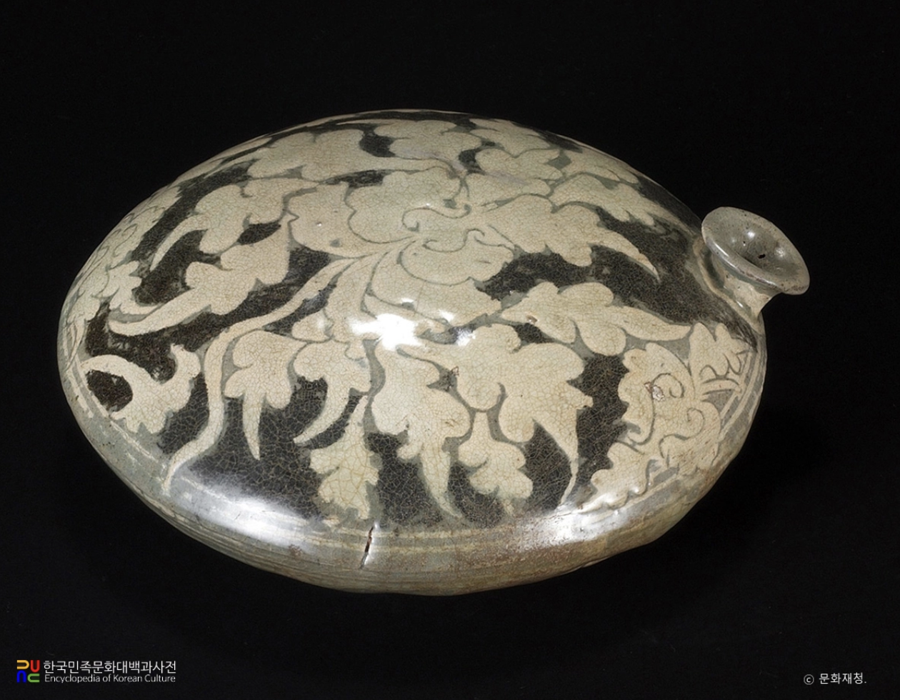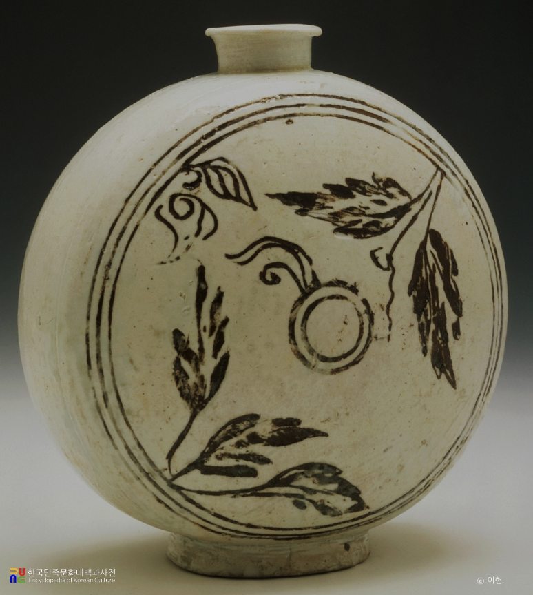 백자 상감모란잎문 편병