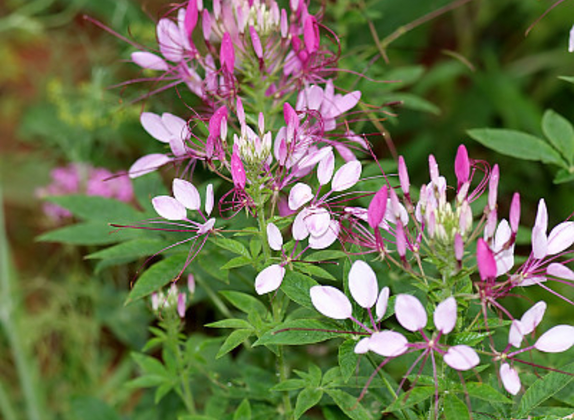 학명은 Cleome hassleriana이며, 줄기와 잎에는 뾰족한 작은 가시가 있어 야생적인 매력도 지니고 있습니다. 키는 60~100cm까지 자라며, 색상은 자주색, 분홍, 흰색 등이 혼합되어 다양한 화단 꾸미기에 적합합니다.